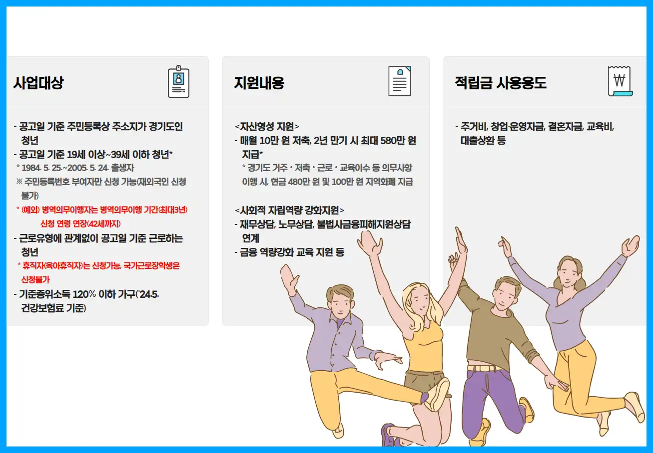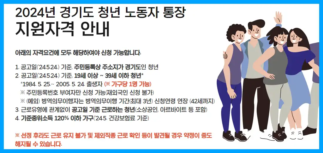 공고일 기준으로 주민등록상 주소지가 경기도인 19세 이상 39세 이하의 청년들을 대상으로 하고,