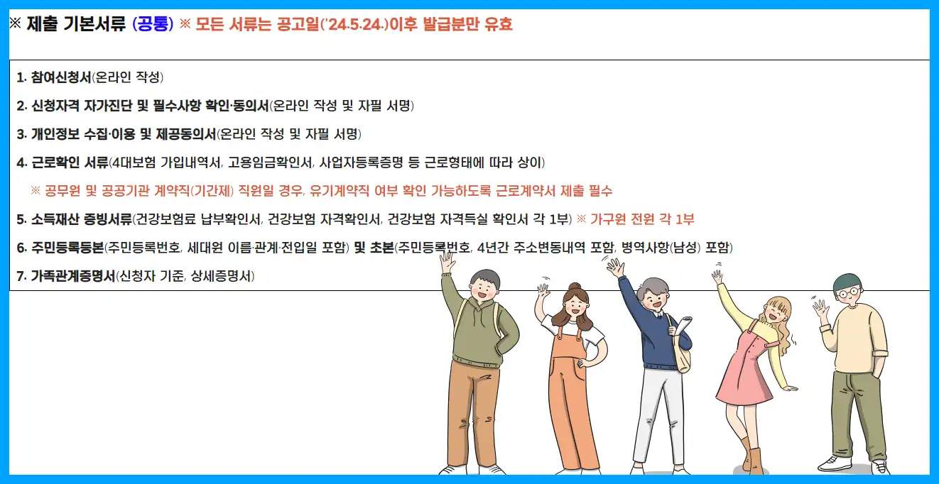 ✔️소득기준 : 기준중위소득 120% 이하 가구 (24.5 건강보험효 기준)