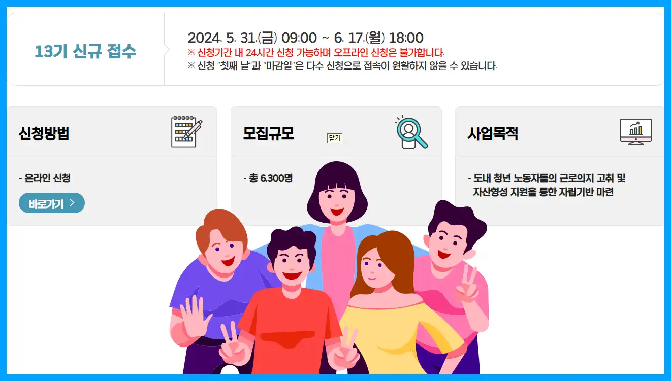 경기도 청년 노동자 통장제13기의 신청이 시작되었습니다.
