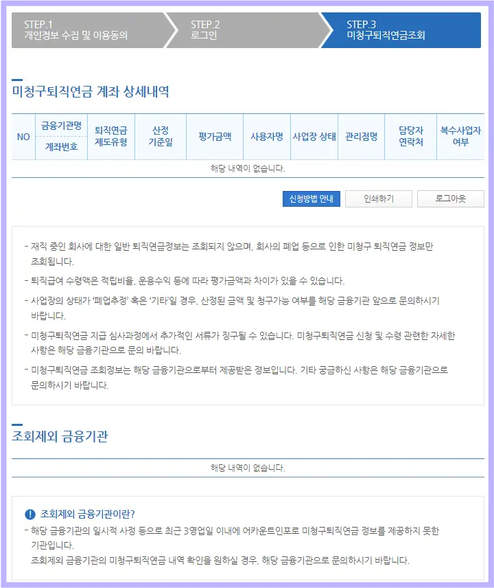 ✅ 미청구퇴직연금 확인