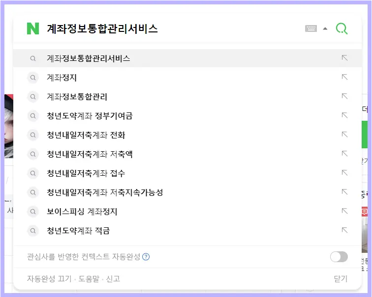 ✅네이버에서 계좌정보통합관리서비스 또는 어카운트인포 검색