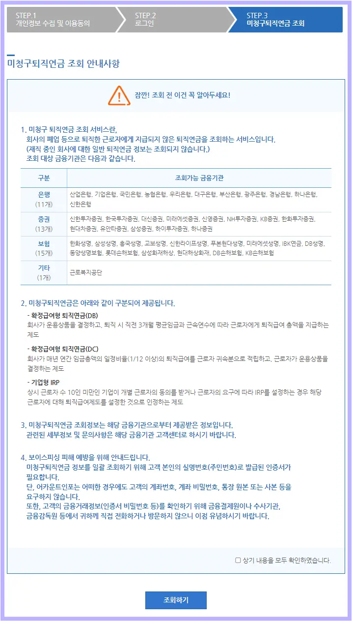 ✅본인의 미청구 퇴직연금 확인하기