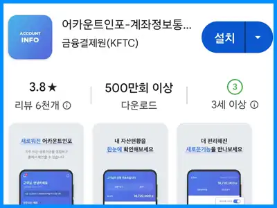 플레이스토어, 앱스토어에서 설치할 앱의 이름인 어카운트인포를 입력하고 설치를 해 줍니다.