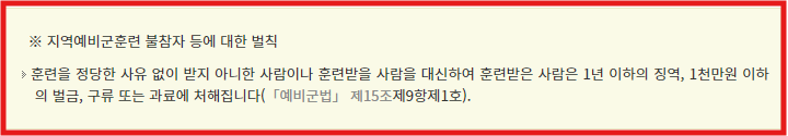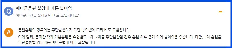 불참에 따른 불이익은 훈련의 종류에 따라 달라집니다.