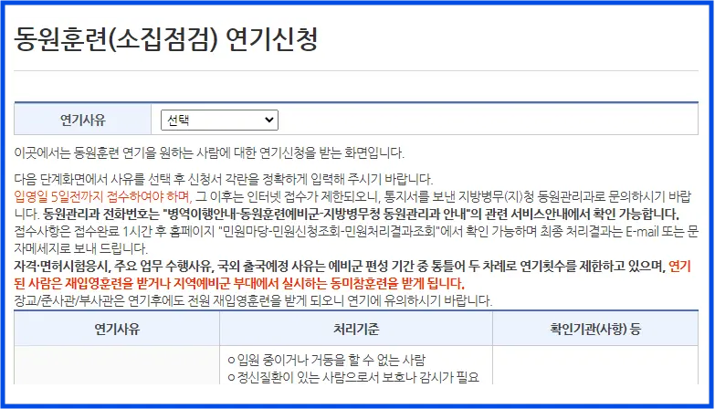 👇🏼👇🏼일반 훈련 연기 신청 바로 가기👇🏼👇🏼