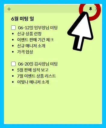 위젯기능을 활용하면 다른 프로그램들보다 더 앞에 위치하여 지속적으로 메모를 볼 수 있습니다.