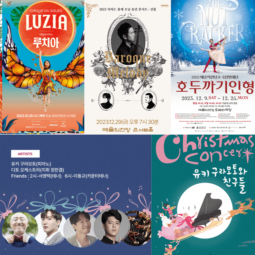 2023년 크리스마스와 연말에 연인, 지인, 가족 혹은 혼자서 즐겨보실 수 있는 공연에 대해서 소개해드리도록 하겠습니다. 공연은 콘서트와 뮤지컬을 제외한 서커스, 마술, 클래식, 발레 등의 장르들로 소개해 드리도록 하겠습니다.