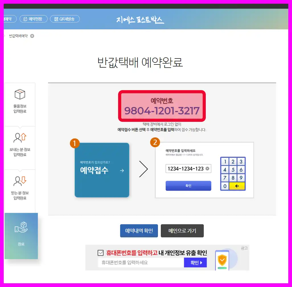 예약이 완료된 택배의 예약 관련 정보를 조회할 수 있습니다.