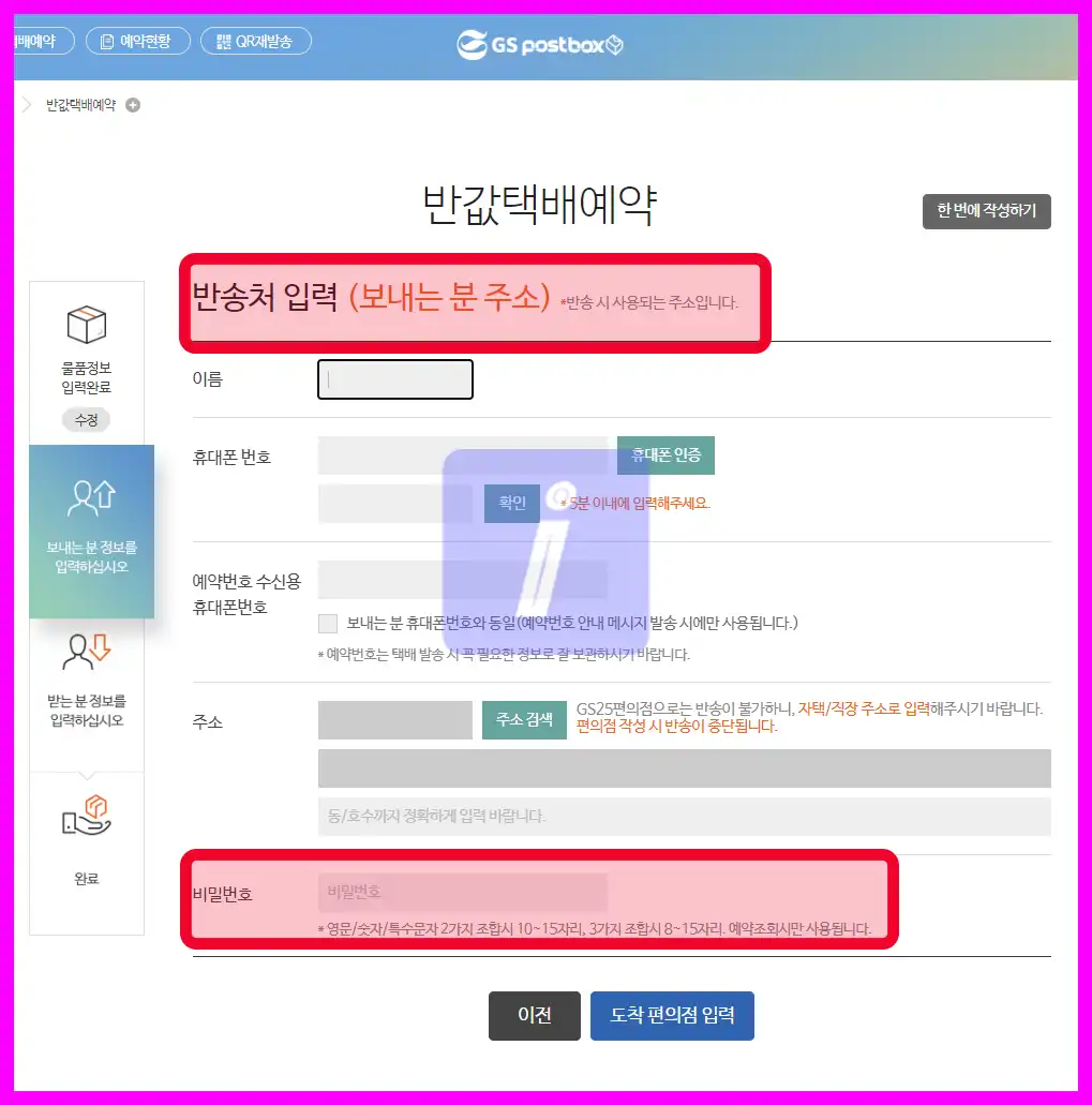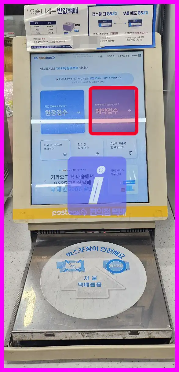 PC로 예약을 완료한 후, GS25 편의점을 방문하여 실제 택배를 맡기는 순서입니다.