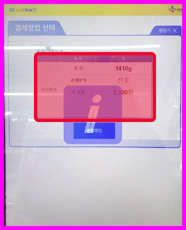 무게에 따른 가격을 확인하고, 운송장 출력 버튼을 눌러줍니다.