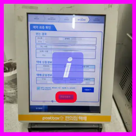 운송장을 택배에 부착하고, 편의점 계산대로 가서 택배비용을 계산합니다.