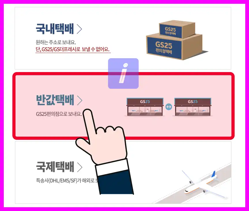 GS반값 택배는 GS25의 물류 인프라를 이용하여 배송하는 택배입니다.
